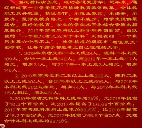 通辽新城一中2019高考成绩喜报、本科一本上线人数情况(通辽一中北校区)