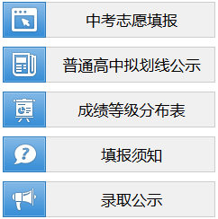 柳州中考招生网网址为:http://www.lzzkzs.com。在柳州中考招生网主页左侧有“中考志愿填报”“普通高中拟划线公示”“成绩等级分布表”“填报须知”“录取公示”可供考生操作,如图1: